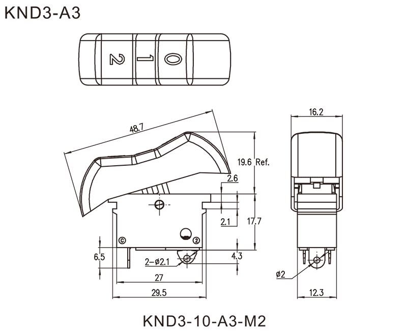 KND3?series are one general type rocker switches, commonly for used in Hair Driers, Heat Guns, etc.