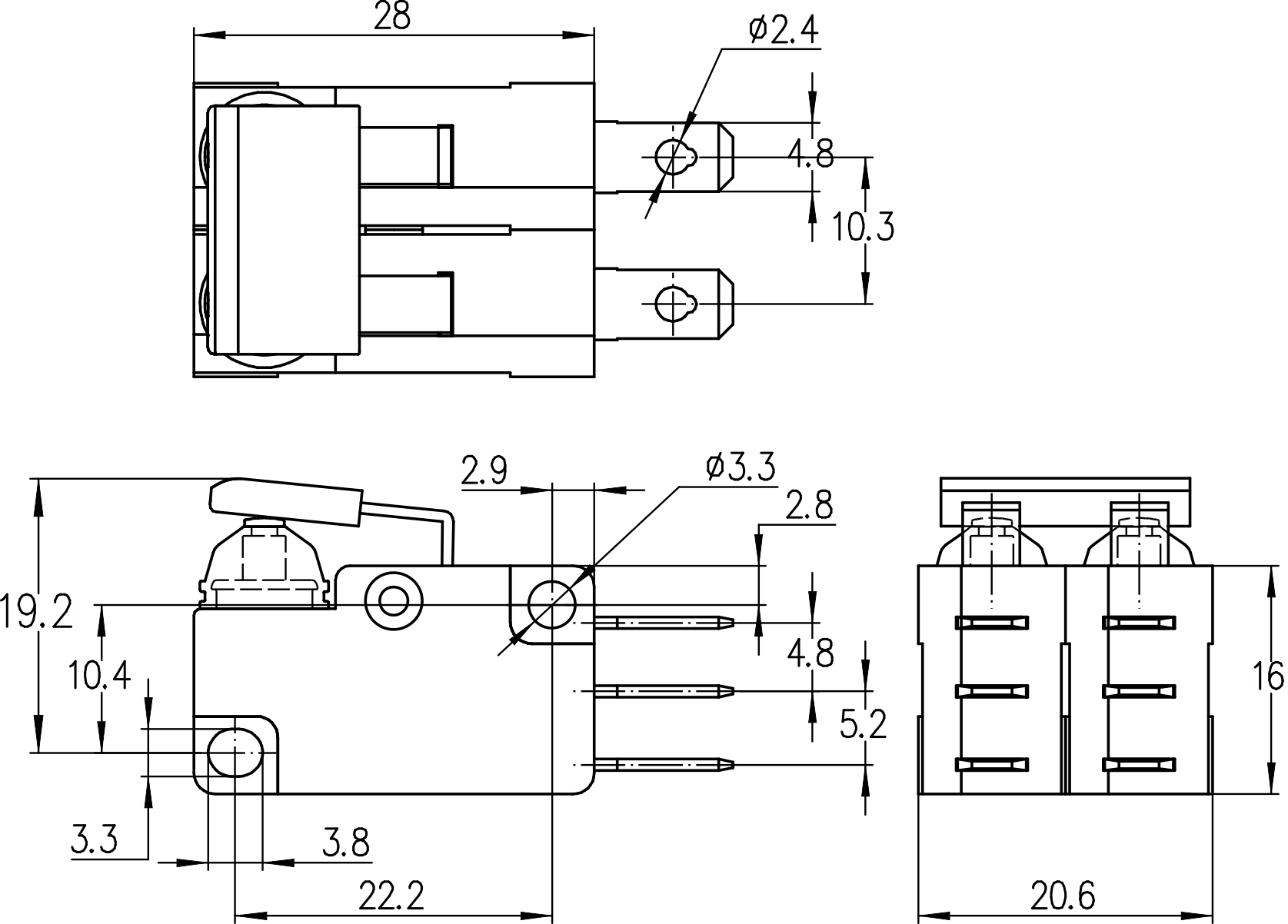 →插片端子 Plug-in terminals 4.8×0.8mm