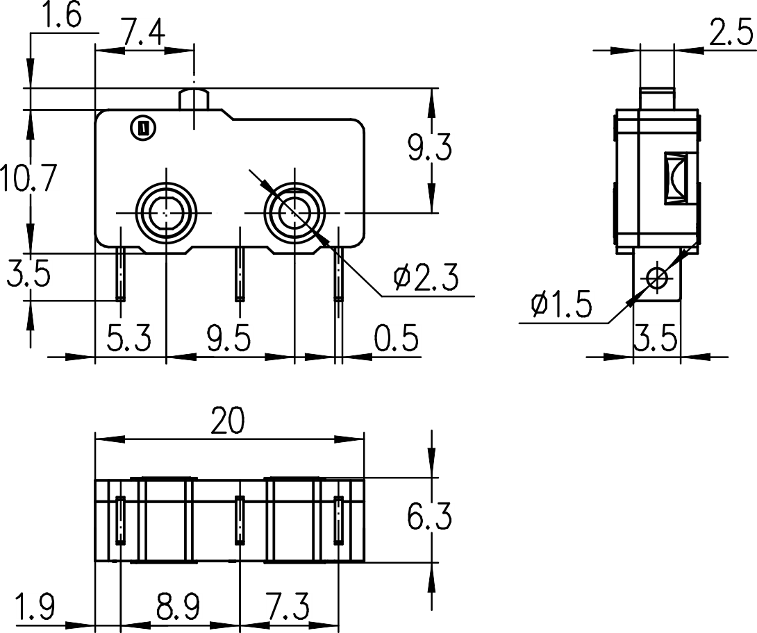 →開(kāi)關(guān)操作力選擇范圍 Operating force range2N ~5N