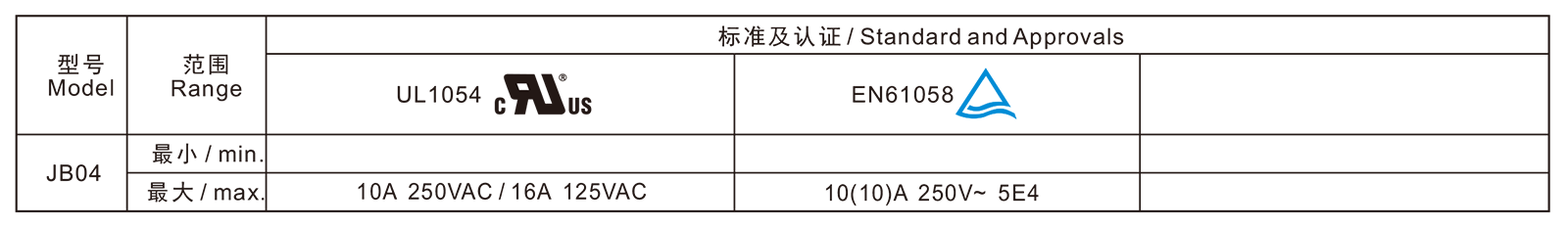電氣參數和認證 Electric Rating and Certification
