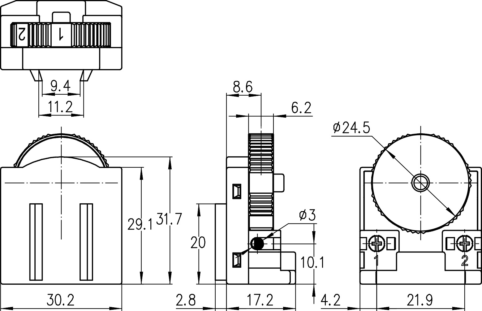 →On-Off通斷功能帶可變電阻輸出 On-off version with Passive linear potentiometer