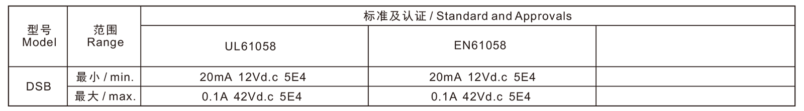 →電氣耐久壽命 Electrical life endurance ≥5E4