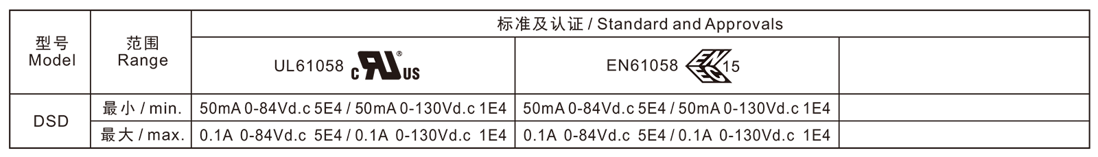 電氣參數和認證 Electric Rating and Certification