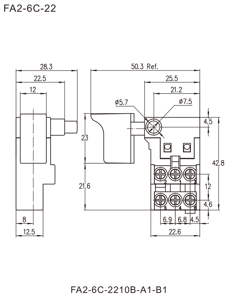 FA2-6C series are one general type trigger switch, integrated dustproof, commonly for used in power tools such as Cut-off Machines, Miter Saws, Marble Cutters, Circular Saws, Electric Hammers, Electric Routers, Belt Sanders, Electric Planers, etc.