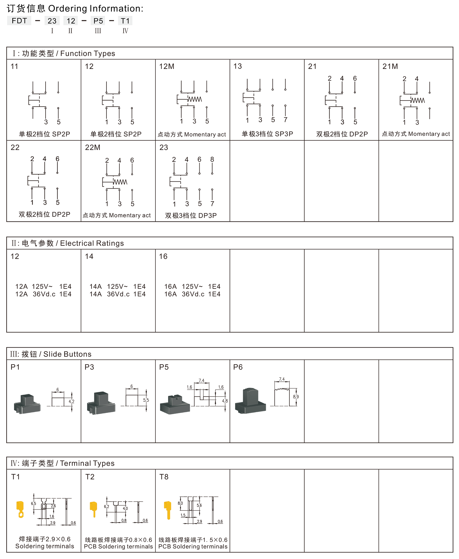 ◆FDT series are general type slide switches, commonly for used in power-tools and small home appliances such as Heat Guns, Blowers, Hair Dryers, etc.
