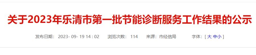 各相關企業、服務機構: 根據《樂清市進一步推動工業經濟高質量轉型發展若干政策》(樂政發〔2022〕6號)文件要求,樂清市經信局組織開展了2023年第一批節能診斷服務工作。經服務機構節能診斷、材料申報、專家函審、公示等程序,確定了第一批節能診斷服務工作結果,現予以公布。 附件:2023年樂清市第一批節能診斷函審結果匯總表
